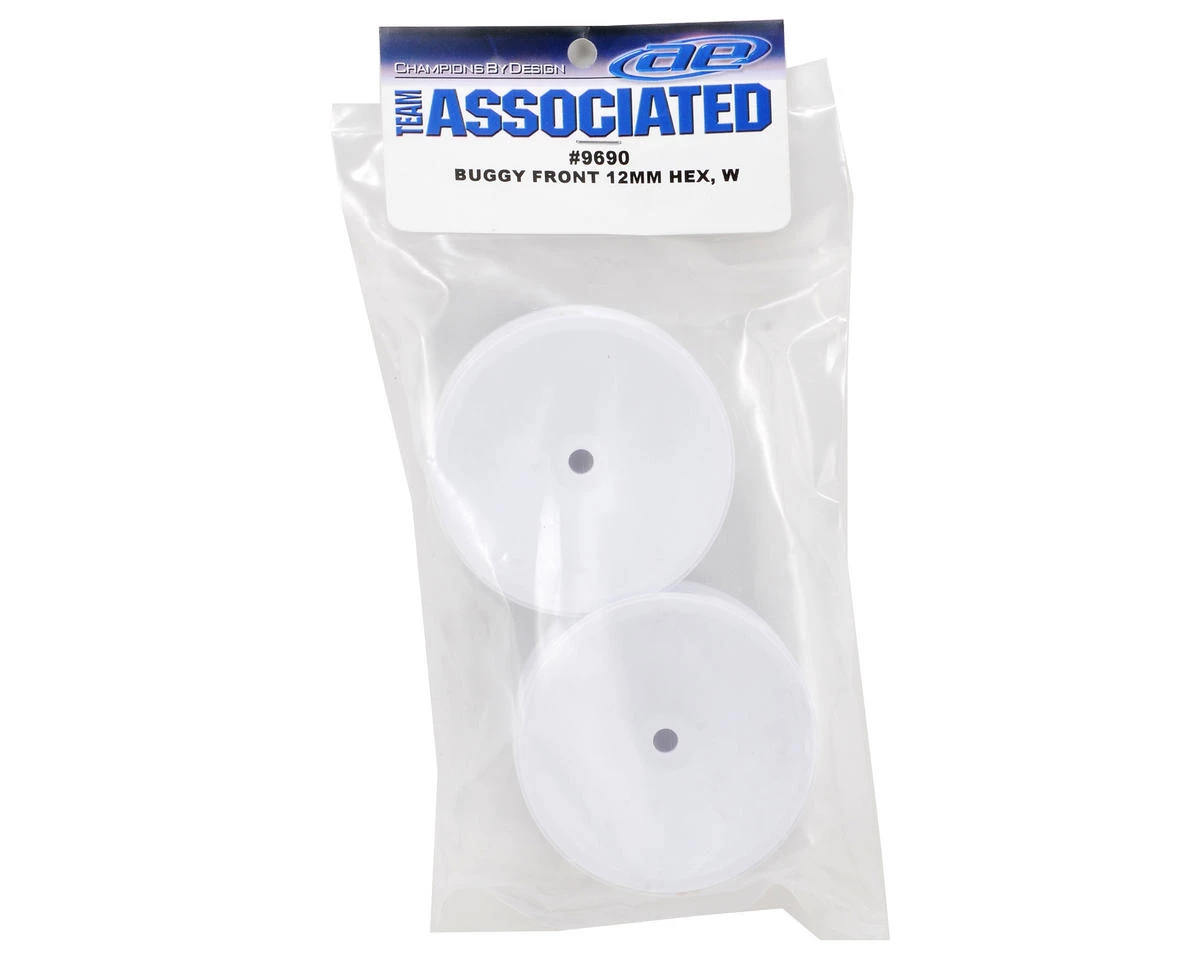 This is a set of two optional Team Associated 2.2 1/10 buggy front wheels with a 12mm hex, and are intended for use with the Associated B4 and B4.1 when equipped with a 12mm hex conversion.