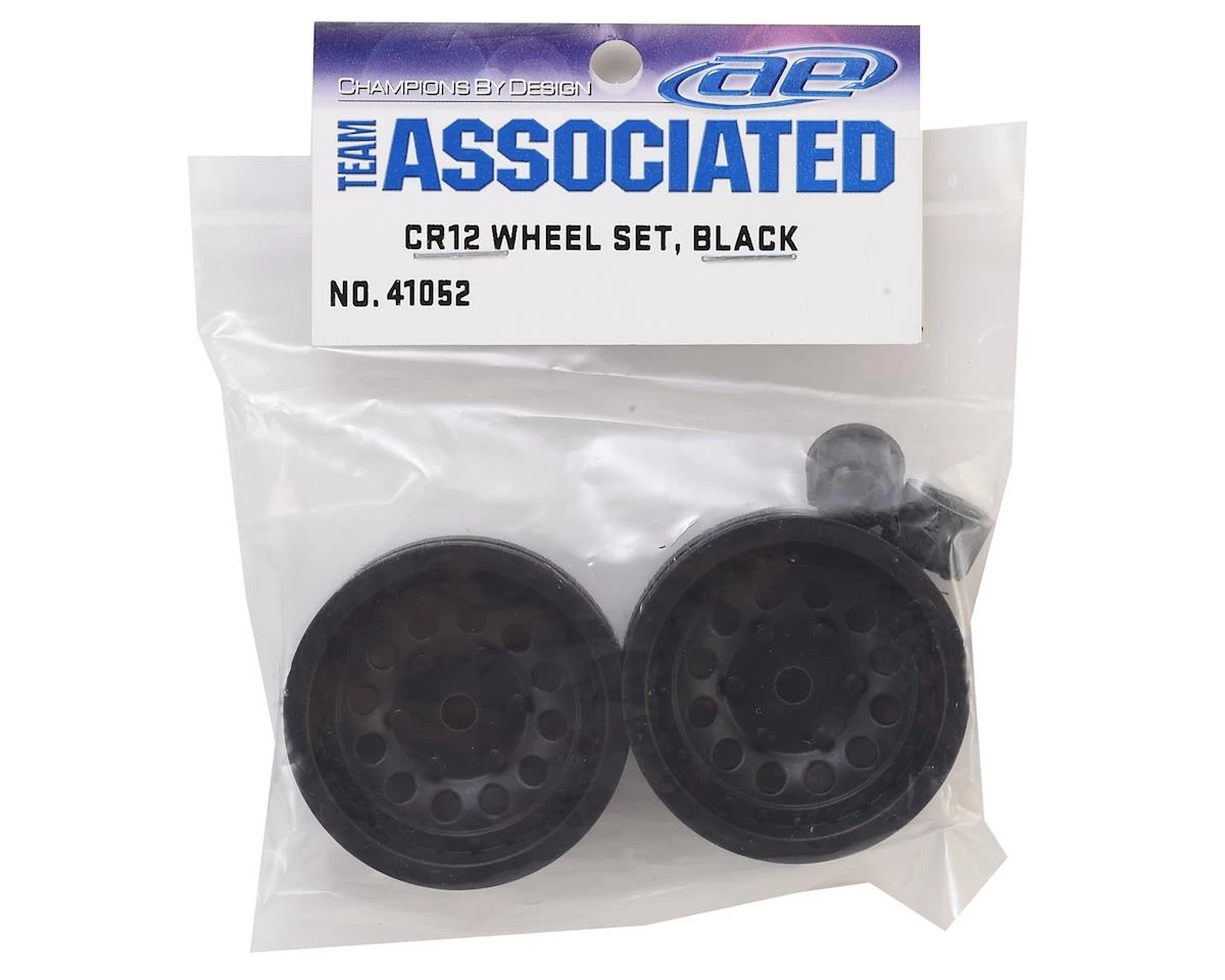 This is a pack of two replacement Team Associated Crawler Wheels, with Caps. These wheels feature a 12mm hex and are intended for use with the CR12 1/12 scale crawler.
