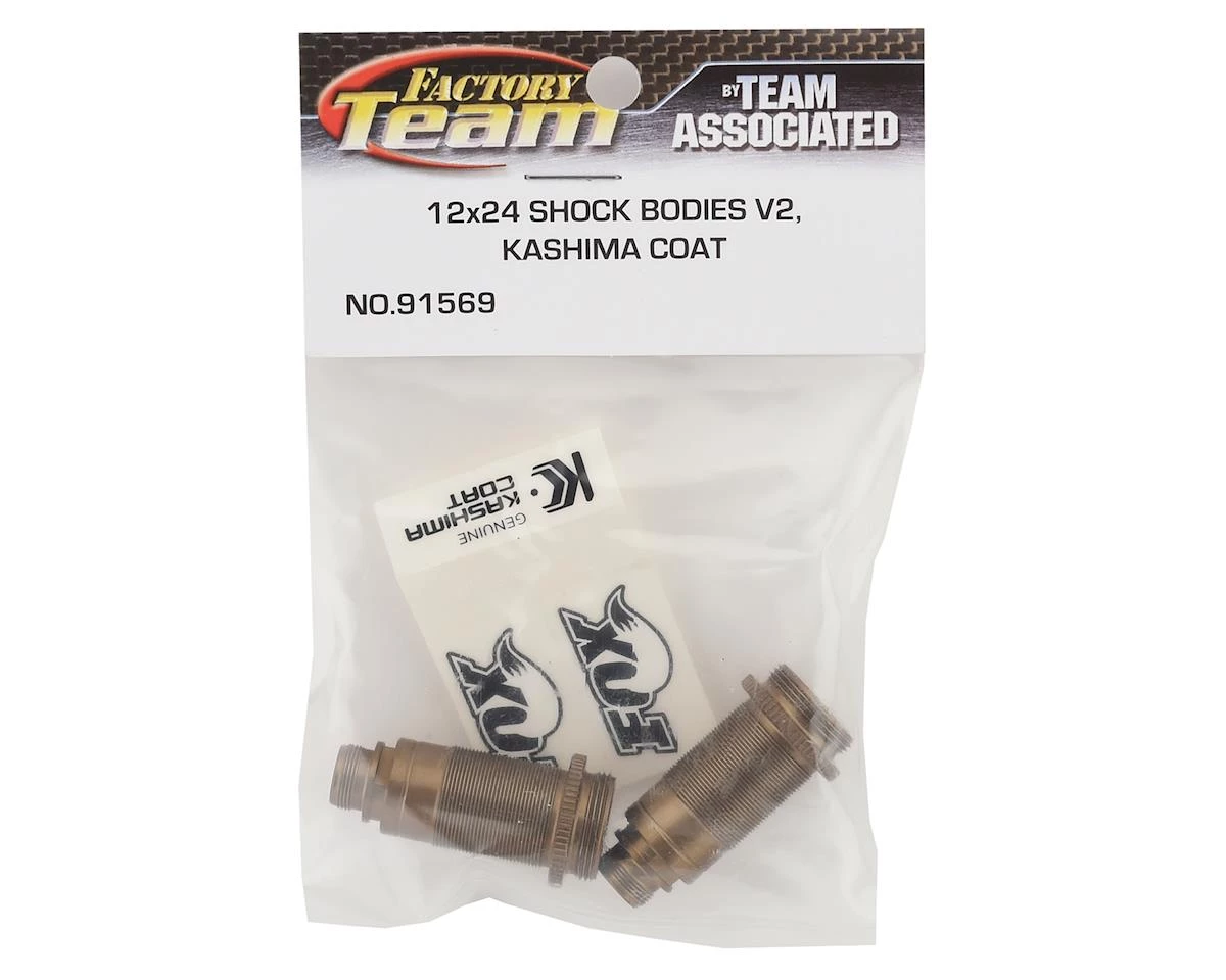 This is a pack of two optional Team Associated 12x24mm FT FOX Kashima Coated V2 Buggy Front Shock Bodies.