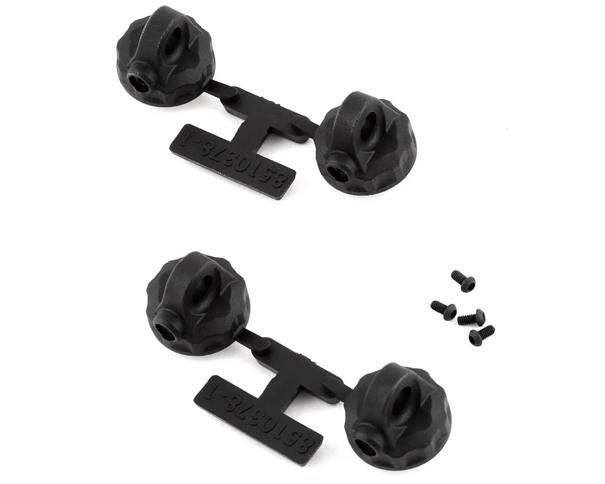 Team Associated 13mm Shock Caps. Package includes four replacement shock caps and hardware.