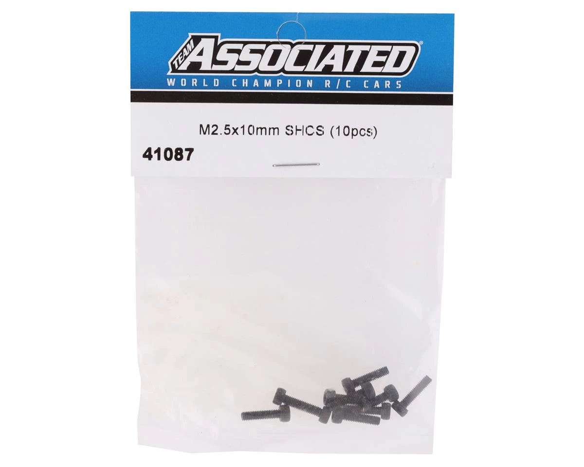 Team Associated 2.5x10mm Cap Head Screws. Package contains ten cap head screws.