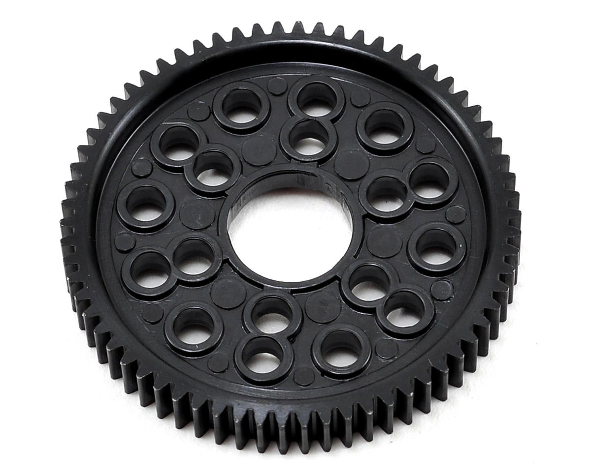 Team Associated 48 Pitch Spur Gear. These spur gears are compatible with all Team Associated touring car and pan car models, and are available in multiple tooth count options to fine tune torque and top speed.