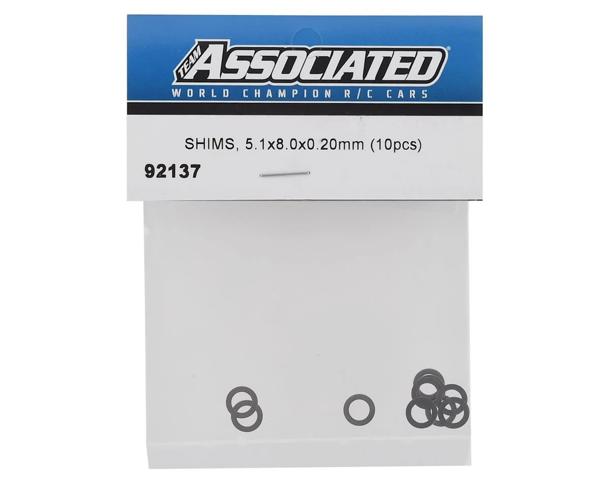 This is a replacement pack of ten Team Associated 5.1×8.0x0.20mm Shims, for use on RC10B74 to replace 5x12x0.2mm in the Team Associated RC10B74 Differential Rebuild Kit (ASC92132). This shim will resist coning under load and prevent the differential from binding.