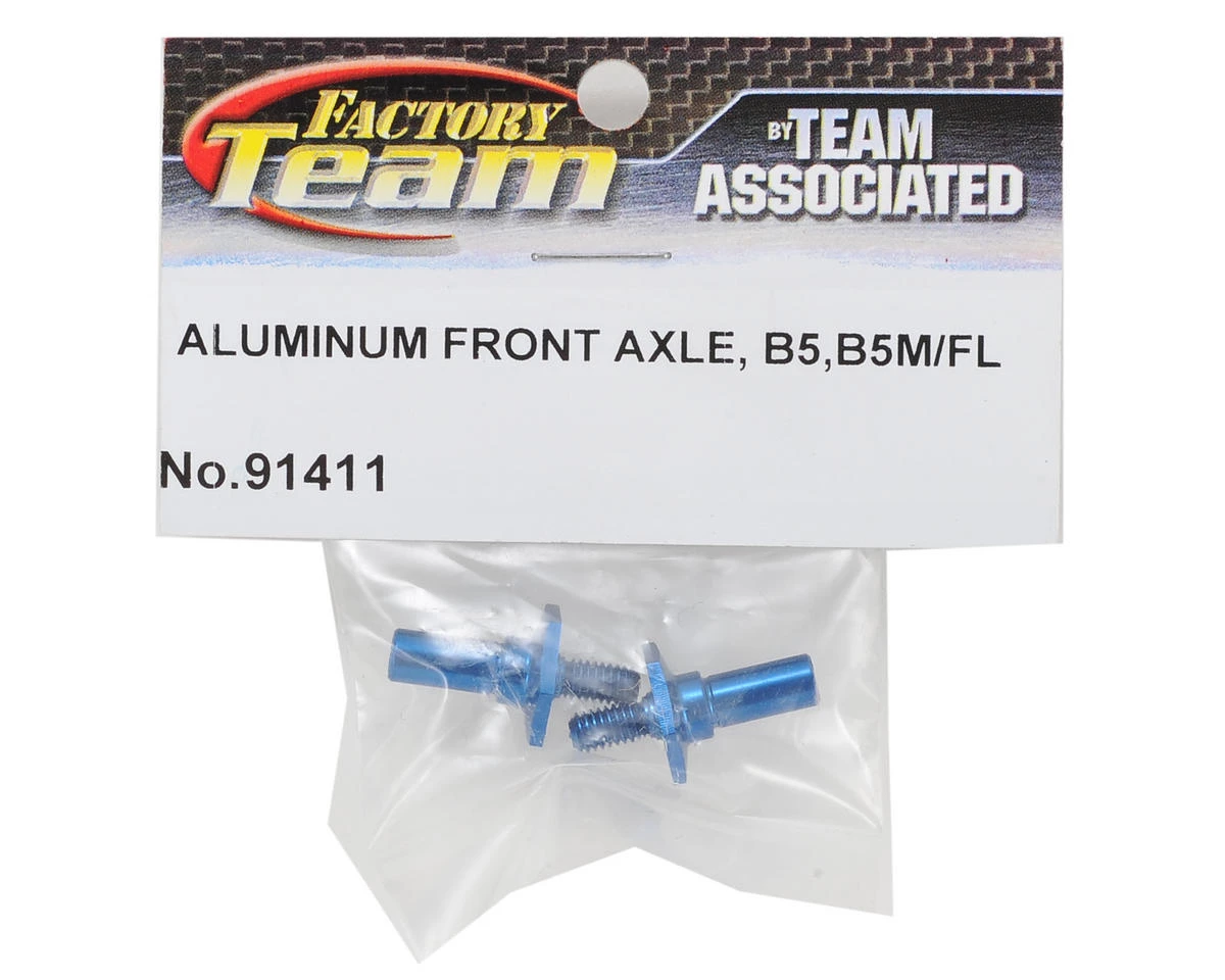 This is a Team Associated Aluminum Front Axle Set. These lightweight aluminum axles are a direct replacement for the B5M Factory Lite kit, but are also compatible with the standard B5 and B5M kits. The axles weigh approximately 1.5 grams each and are a great upgrade option for racers that want to reduce unsprung weight.