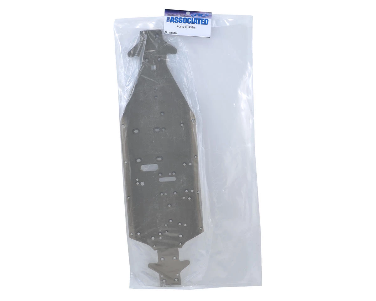 This is a replacement Team Associated Aluminum Chassis for use with the RC8T3 Nitro Truggy.