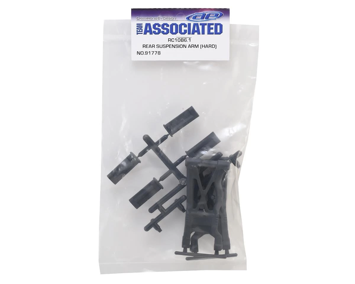 Team Associated B6.1/B6.1D Rear Suspension Arms. These are the optional hard compound arms. Package includes two arms and four shock mount arm inserts.