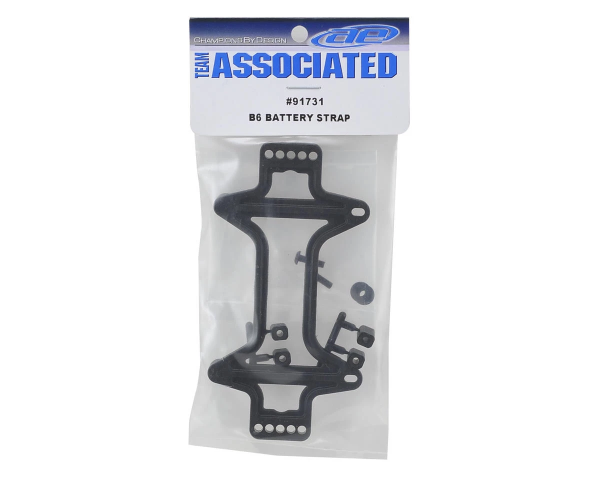 Team Associated B6 Battery Strap. This is the replacement battery strap for the RC10 B6 and B6D buggies. Package includes battery strap, battery strap nuts and hardware.