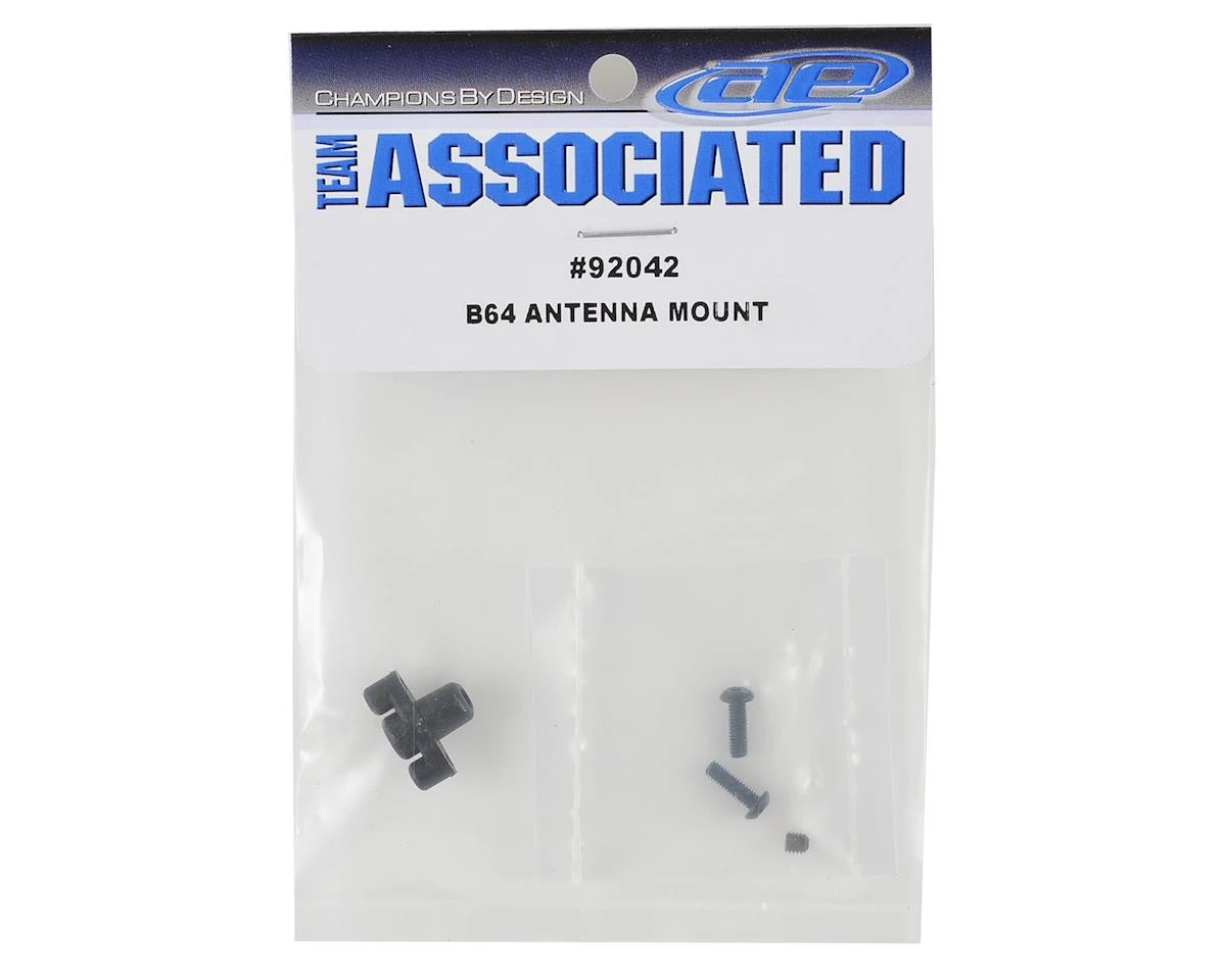 Team Associated B64 Antenna Mount. This is the standard replacement antenna mount for the B64D buggy. Package includes antenna mount and hardware.