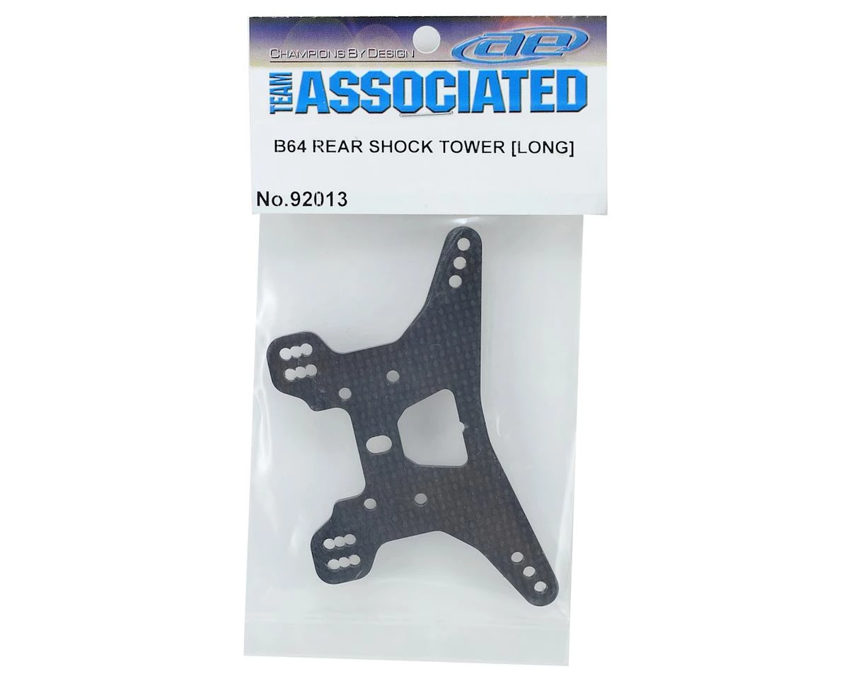 This optional Team Associated “Long” Carbon Fiber Shock Tower is intended for the B64 and B64D and accommodates longer, higher capacity 31mm shocks for better compliance on very bumpy or loose tracks.