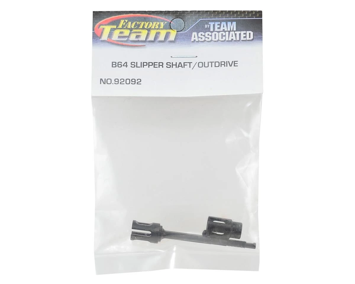 Team Associated B64 Factory Team Slipper Shaft & Outdrive. Package includes one slipper shaft and one outdrive.