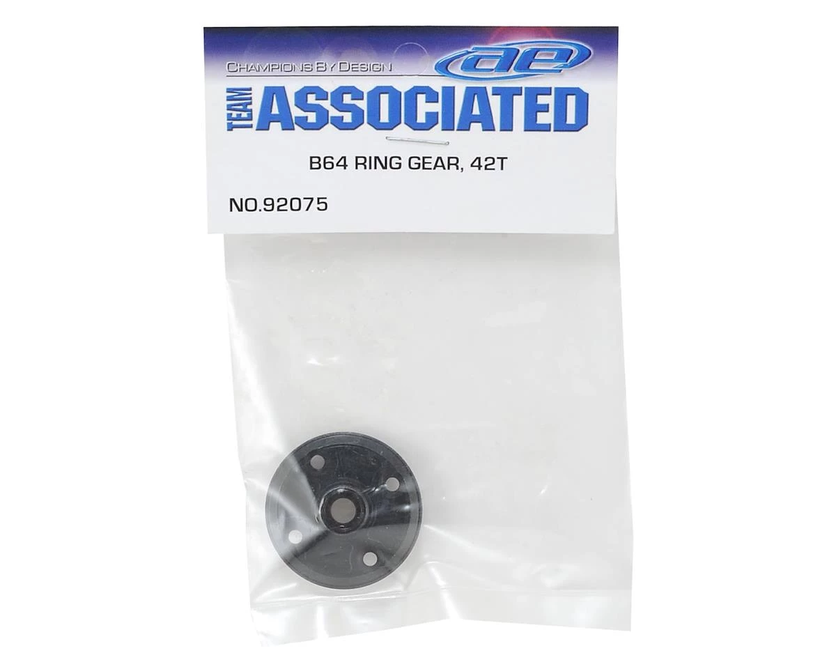 Team Associated B64 Ring Gear. Package includes one replacement 42 Tooth ring gear.