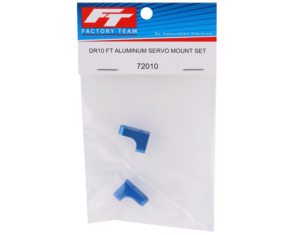 Team Associated DR10 Factory Team Aluminum Servo Mount Set. Upgrade the plastic servo mounts in your Team Associated DR10 with these optional mounts. Using these mounts allow for a more secure hold to your servo. Package includes two servo mounts.