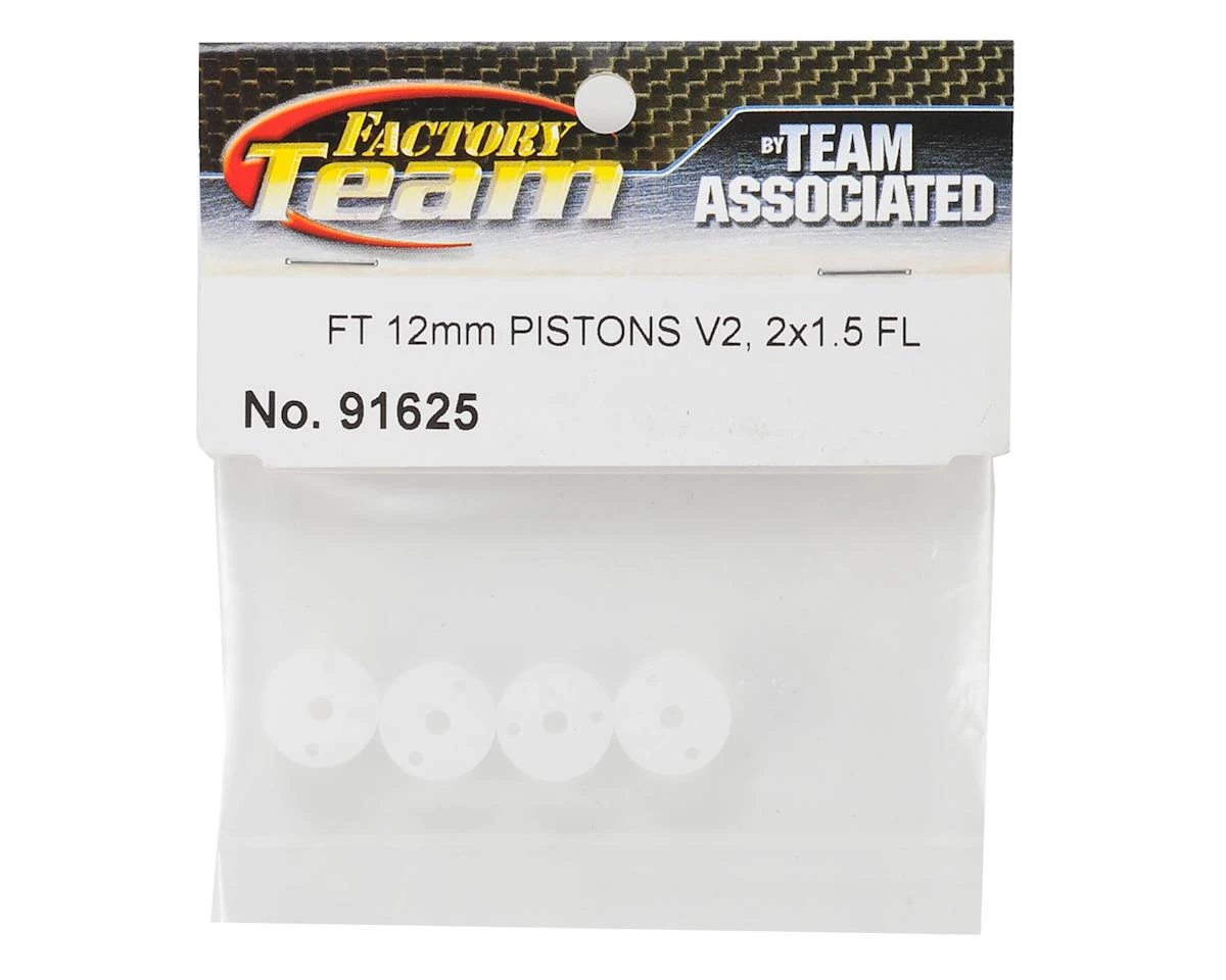 This is a pack of four Team Associated Factory Team 12mm FT V2 Flat Mount Shock Pistons. These pistons features two 1.5mm holes.