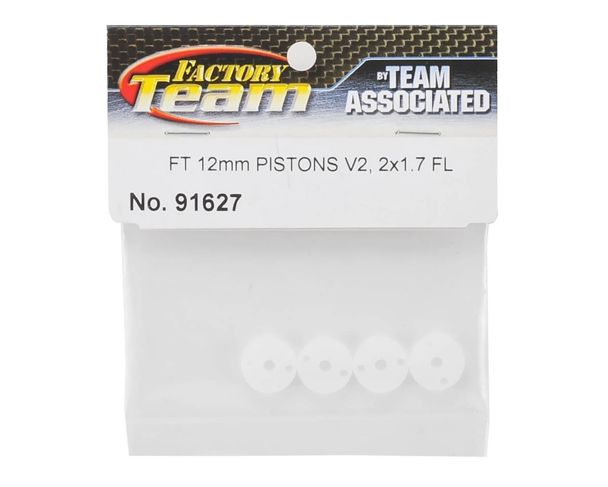This is a pack of four optional Team Associated Factory Team V2 Flat Mount Shock Piston. These flat pistons feature two 1.7mm holes and are for use with 12mm shocks.