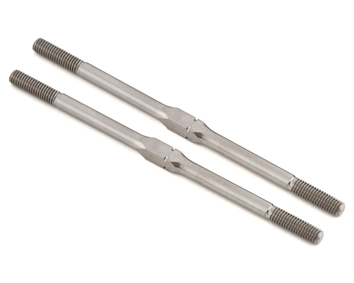 This is a set of two optional titanium turnbuckles for the Team Associated RC10GT2 1/10th scale off-road truck. These are used to connect the right and left steering blocks to the servo saver.