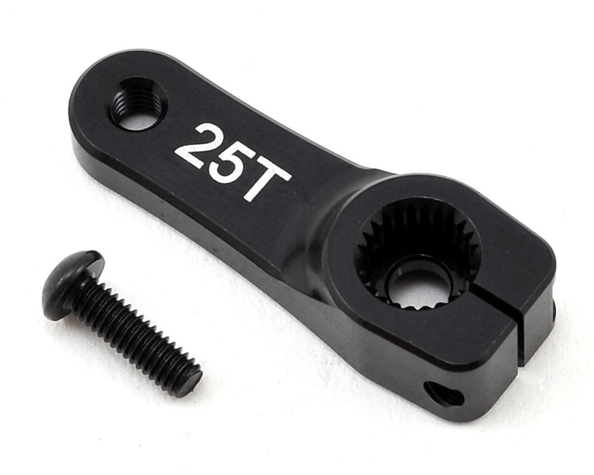 The Team Associated Factory Team Aluminum Servo Horn was developed for the steering servo in the RC8B3, RC8B3e, RC8T3, and RC8T3e models. These machined aluminum servo horns are stronger than the stock plastic horns that come with most servos and due to the slightly shorter length, they provide a smoother steering feel and decrease the load on the servo. 25T fits Futaba, XP Digital, Reedy, Savox and ProTek servos.