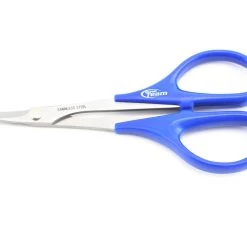 These are Curved Lexan Scissors from Team Associated. If you have painted bodies for your cars and cut them out to fit your vehicle, you need some of these scissors. These scissors have a small curve to the blade making it much easier to cut around complex curves in your lexan car bodies.