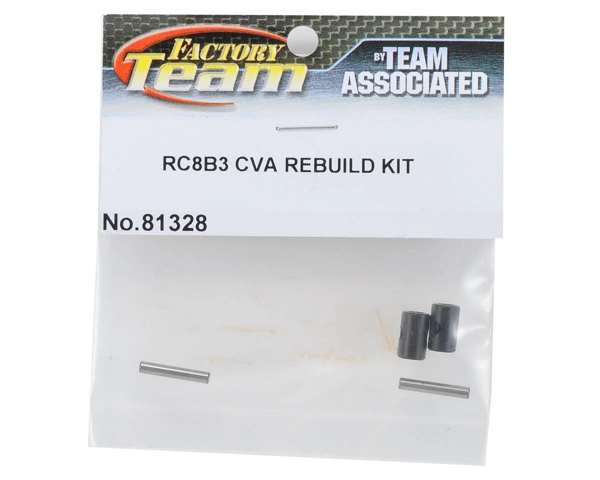 The Team Associated Factory Team RC8B3 CVA Rebuild Kit is a replacement for RC8B3 and RC8B3e vehicles that have been equipped with the optional Factory Team RC8B3 CVA Set (ASC81333, ASC81334). Package includes two CVA barrels and two pins.