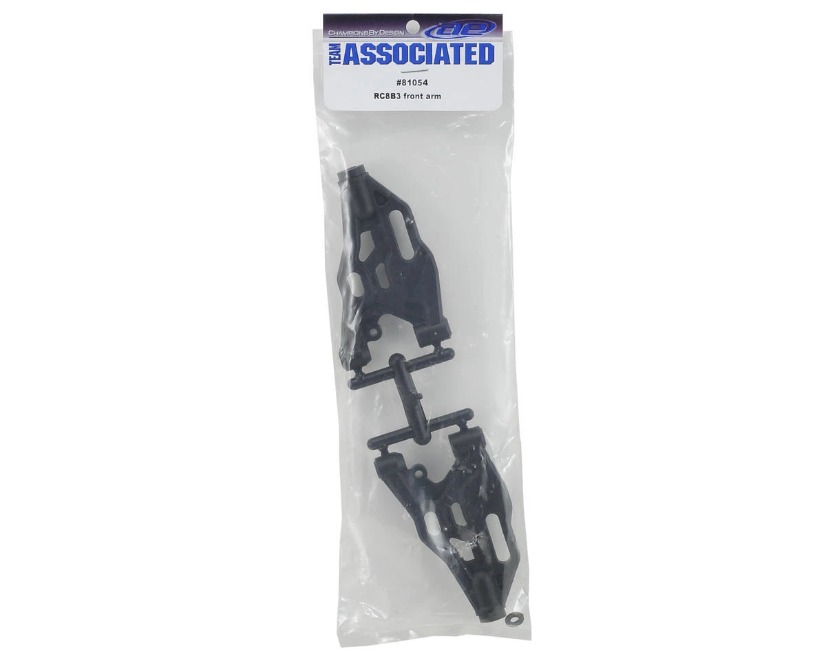 This is a replacement Team Associated Front Arm Set, intended for use with the RC8B3 Nitro Buggy. This set includes one left and one right side arm, as well as two plastic arm spacers. These arms are directional!