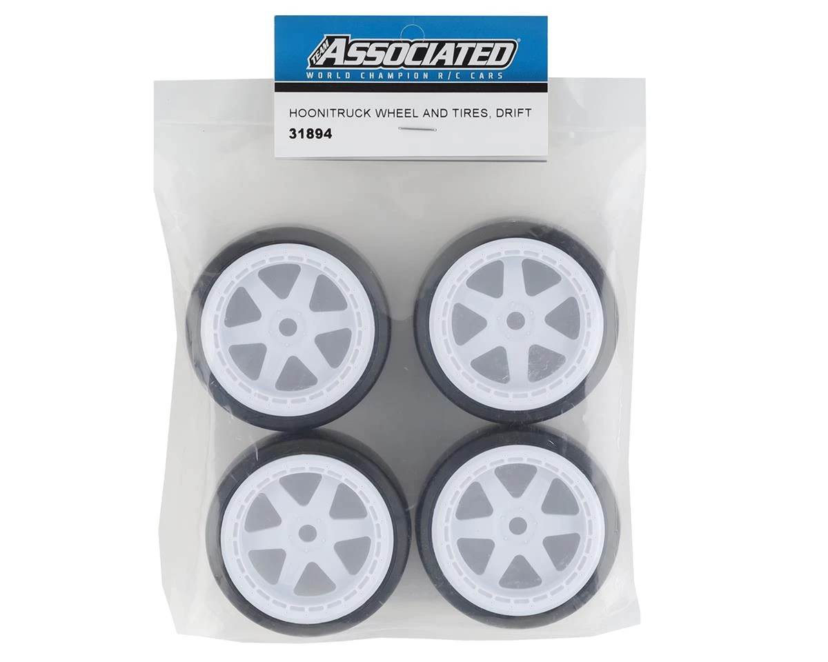 Team Associated Hoonitruck Pre-Mounted Drift Tires and Wheels with 12mm Hex. These optional drift tires come pre-mounted for the Team Associated Apex2 Hoonitruck. Package includes four pre-mounted tires.