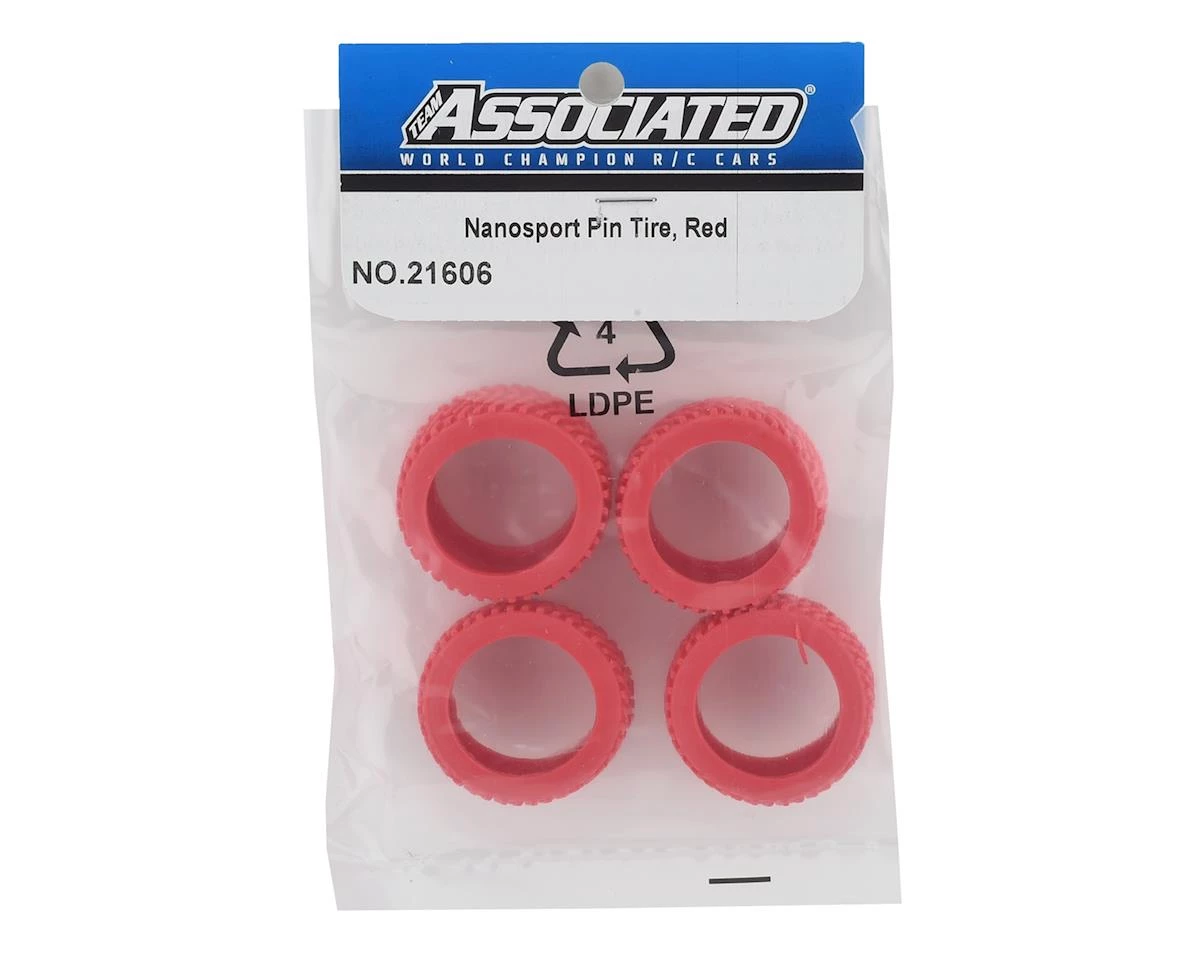 This is a replacement set of four Team Associated NanoSport Pin Tires, intended for use with the NanoSport 1/32 2WD RTR Cars. These pin tires are great for added bite on outdoor or rough surfaces.