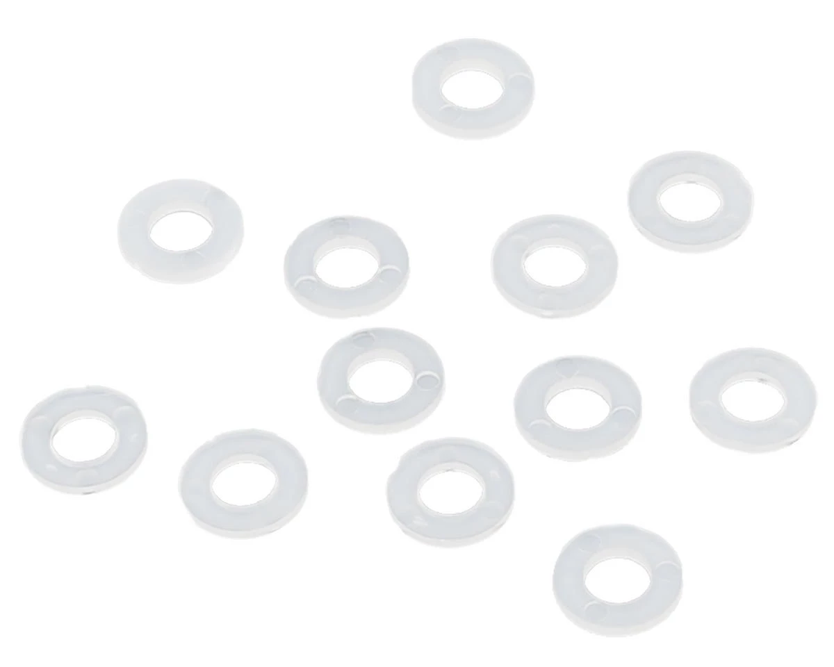 This is a pack of nylon front axles spacers for Team Associated trucks and buggies. You can also use these to adjust the camber link locations under the ball studs.