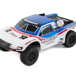 The Team Associated ProSC10 Combo is a Ready-To-Run RC replica of the trucks driven in the Lucas Oil Off Road Racing Series. The ProSC10 features a rear motor short-course chassis that utilizes many of the same parts from the widely successful RC10SC5M platform. Adjustable aluminum big bore coil-over shocks, a sealed-gear differential, and heavy-duty CVA driveshafts are all features that come standard on the ProSC10. A powerful water-resistant Reedy electronic speed controller and 3300Kv electric motor power the ProSC10 for high-speed fun. To handle the power, the ProSC10 comes equipped with realistic wheels and tires specifically made to handle any off-road condition.