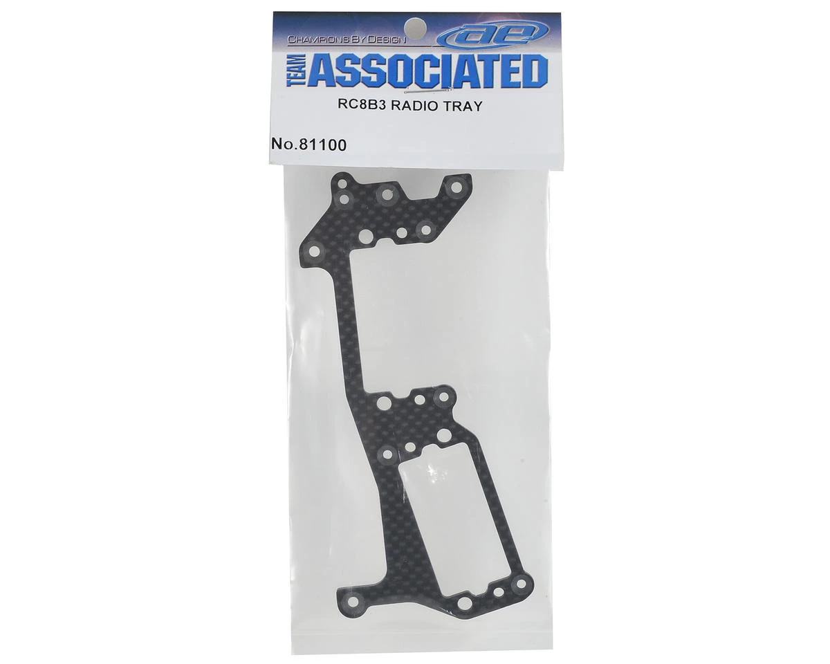 This is a replacement Team Associated RC10B3 Radio Tray. Package includes one carbon fiber radio tray plate.