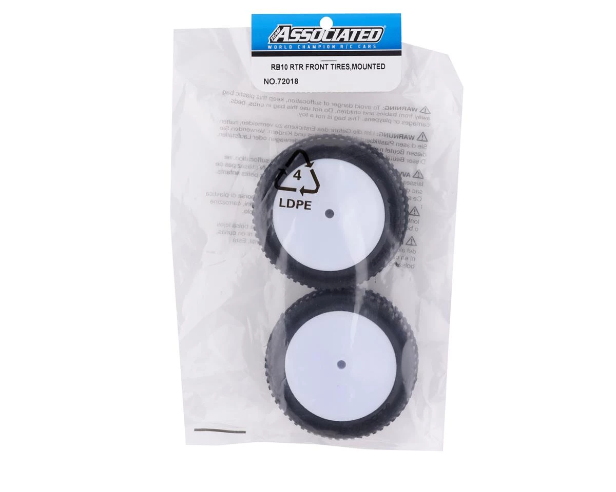 Team Associated RB10 RTR Front Pre-Mounted Tires. These replacement front tires are intended for the the rear of the Team Associated RB10. Package includes two pre-mounted tires.