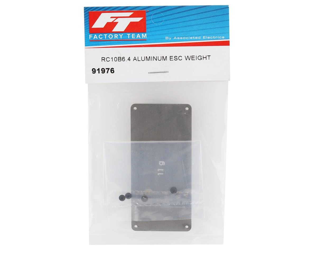 Team Associated RC10B6.4D Factory Team Aluminum ESC Weight. This replacement ESC weight is intended for the Team Associated B6.4D, however, it will also work in the Team Associated B6.4 as a tuning option. Package includes one ESC weight.