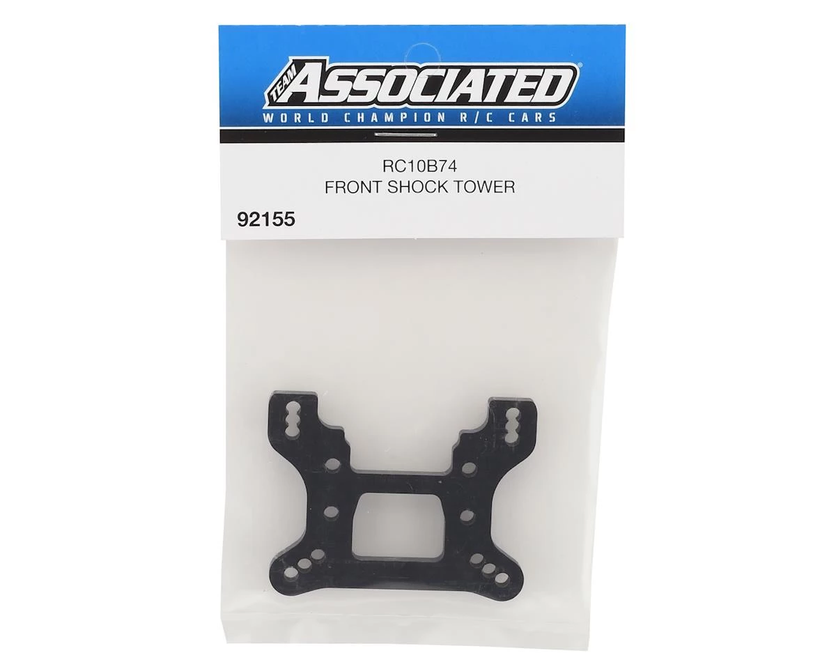 This is a replacement Team Associated Carbon Front Shock Tower for the RC10 B74 4WD Buggy.