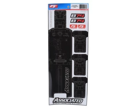 This is an optional Team Associated RC10B74 Factory Team Chassis Protective Sheet, intended for use with the RC10 B74 kits.