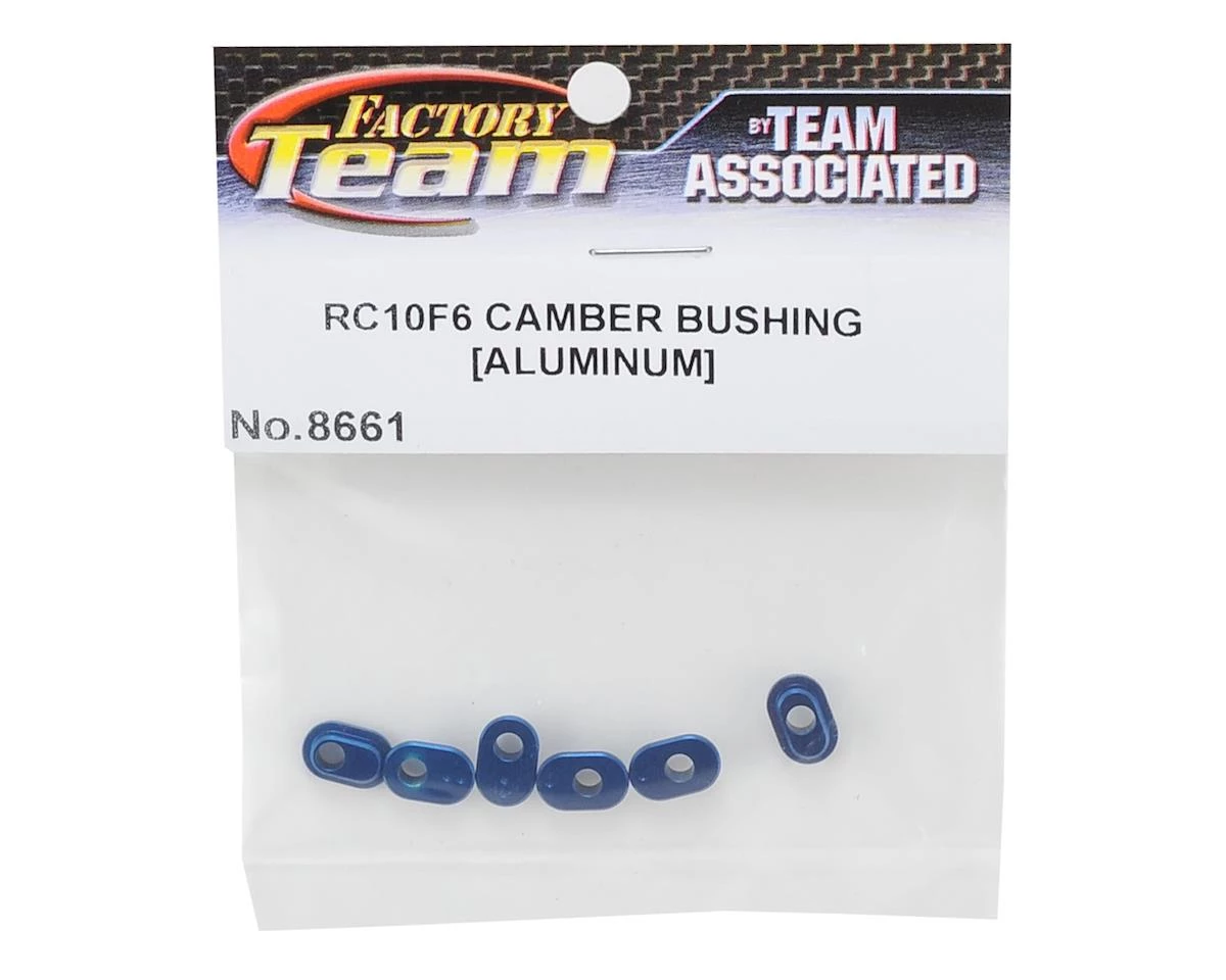 Team Associated RC10F6 Aluminum Camber Bushings. Package includes three aluminum 1-dot bushings and three aluminum 2-dot bushings.