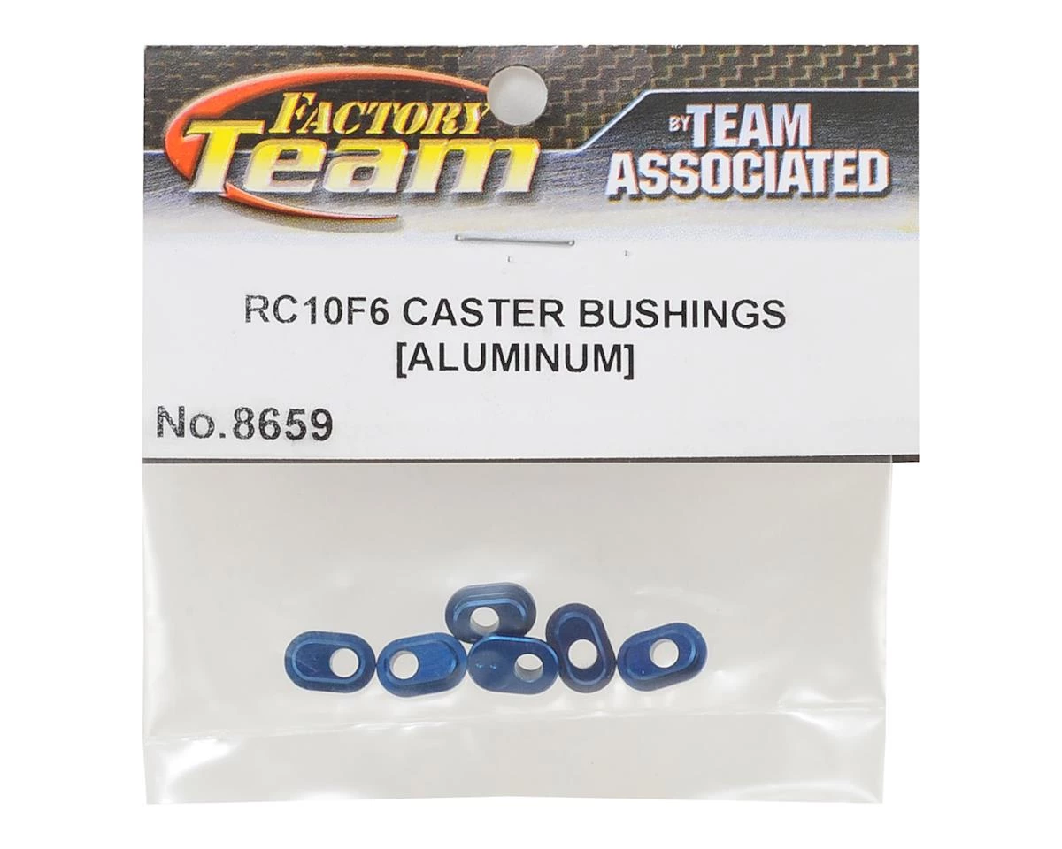 Team Associated RC10F6 Aluminum Caster Bushings. Package includes four aluminum 1-dot bushings and four aluminum 2-dot bushings.
