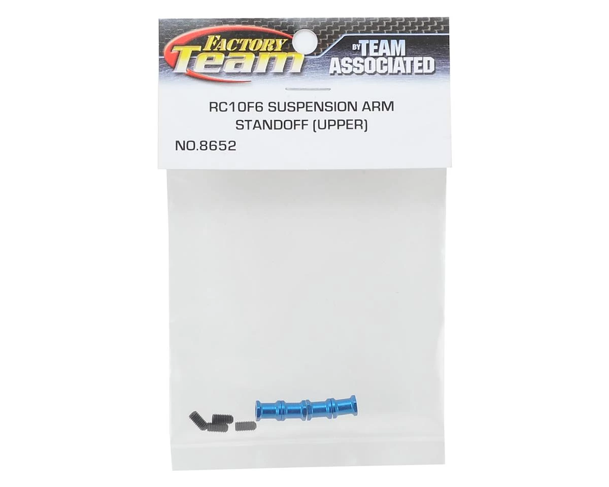 Team Associated RC10F6 Suspension Upper Arm Standoffs. Package includes four standoffs and four set screws.