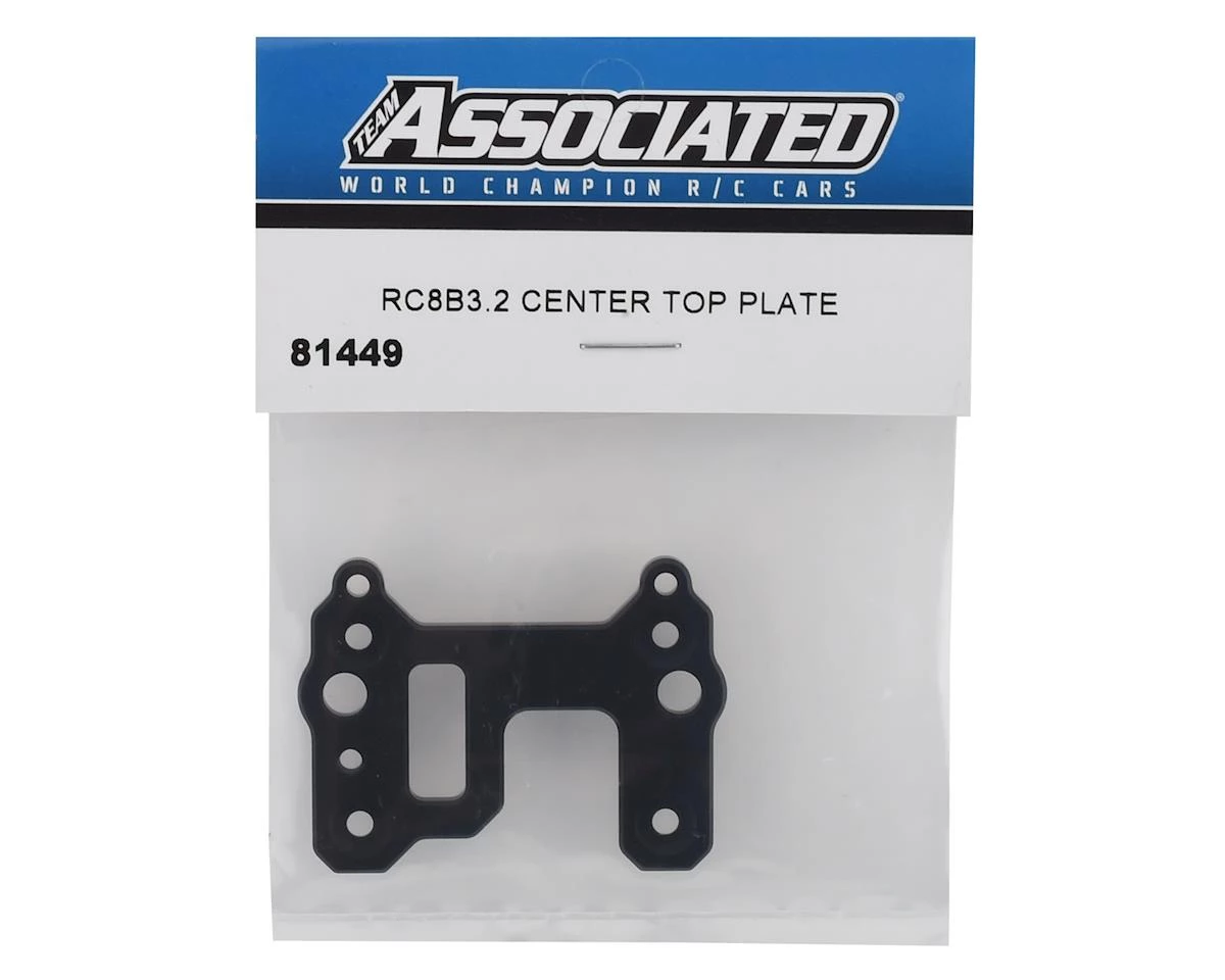 Team Associated RC8 B3.2 Center Top Plate. Package includes replacement center bulkhead top plate compatible with the Team Associated RC8 B3.2.