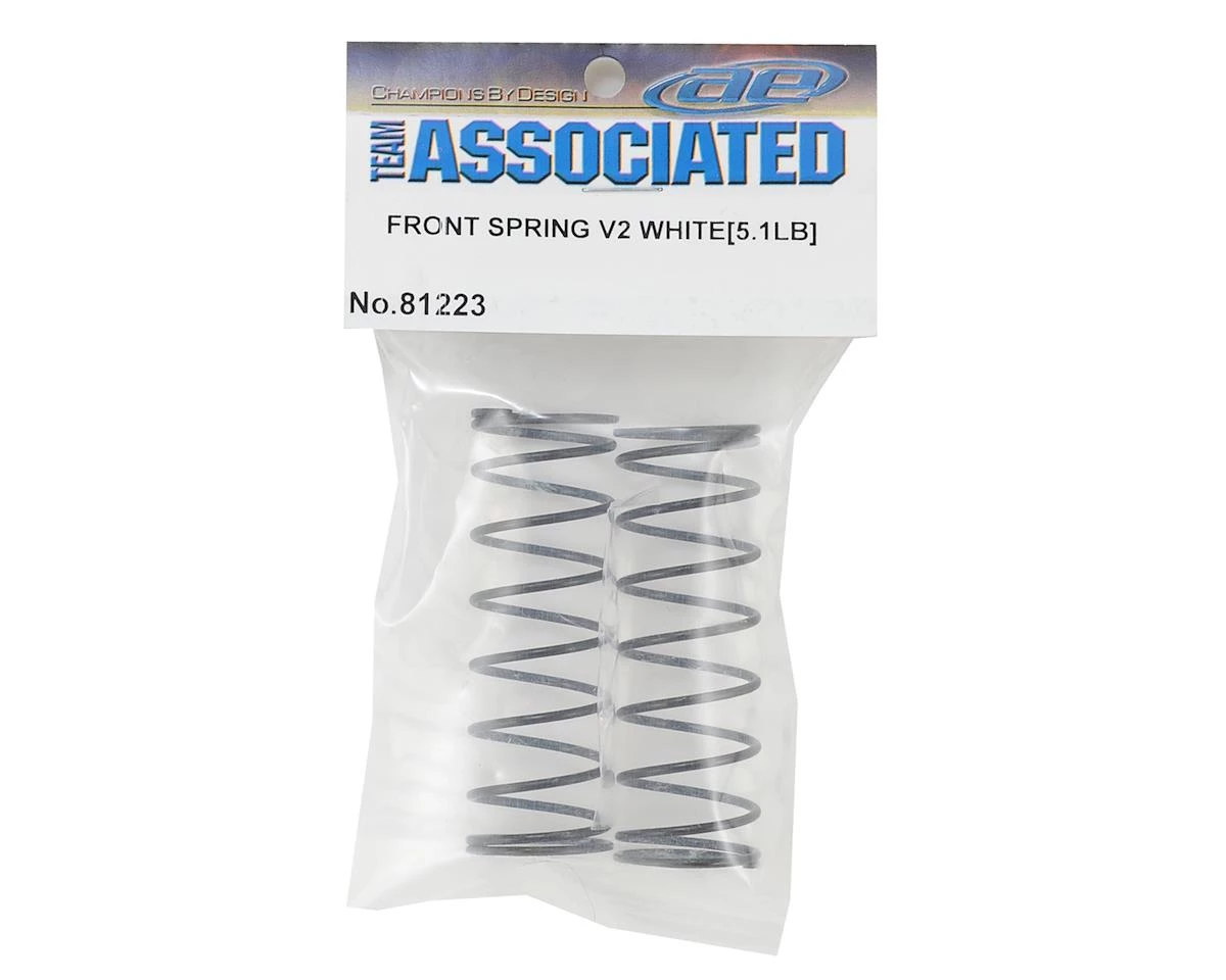 This is a pack of two Team Associated RC8B3.1 Front Shock Springs. These springs are rated 5.1lb/in and color marked White. These springs are 70mm long with a 9.25 Turn and 1.6 wire diameter.