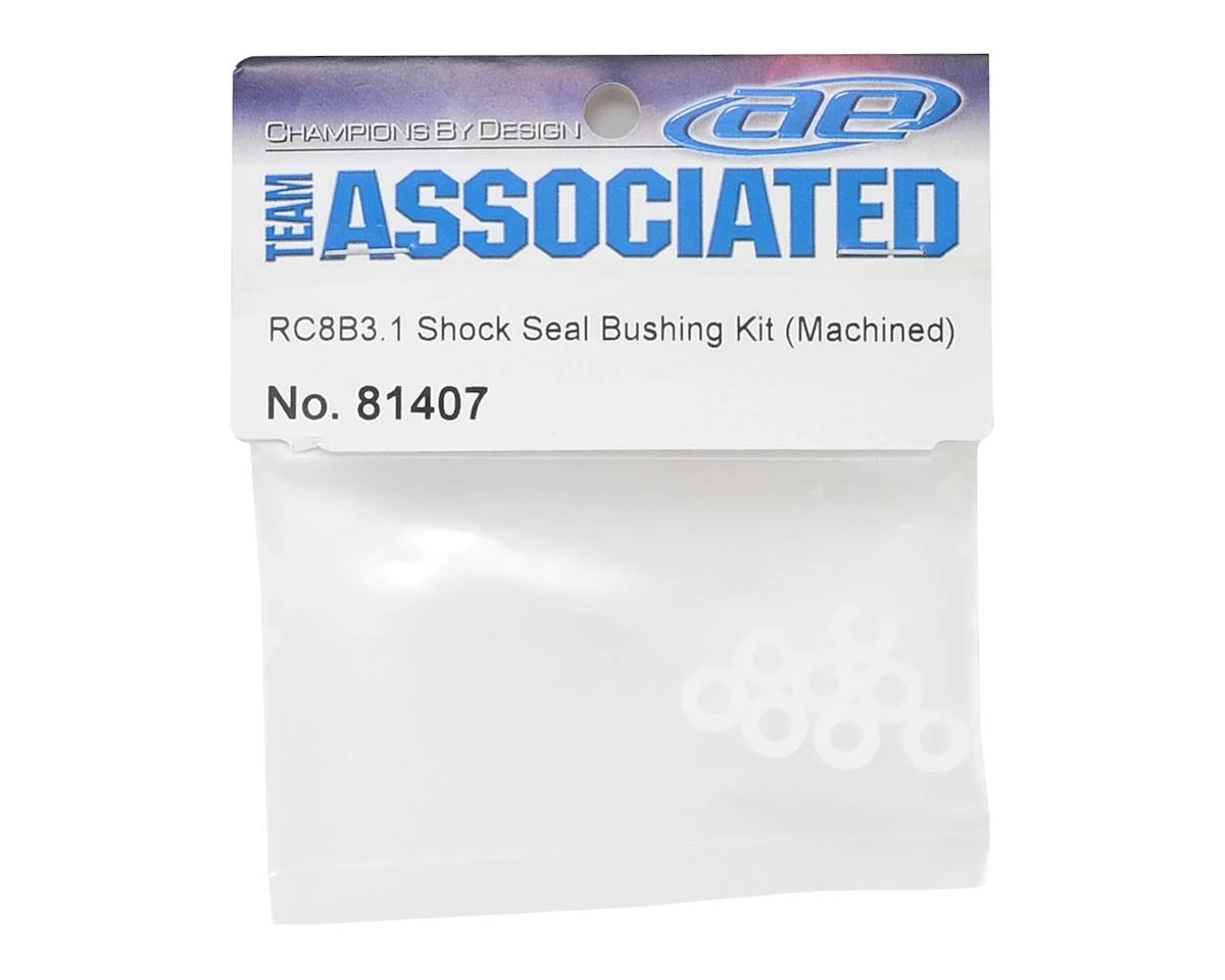 This is a replacement Team Associated RC8B3.1 Shock Seal Bushing Set, including four machined shock o-ring spacers and four machined shock o-ring hat bushings.