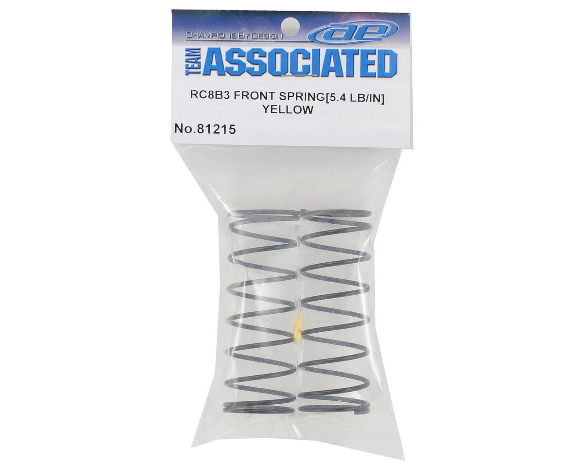 Optional Team Associated Front Shock Spring Set. These are the stiff yellow 5.4lb/in springs and are one step stiffer than the blue 5.0lb/in springs that are included in the kit.