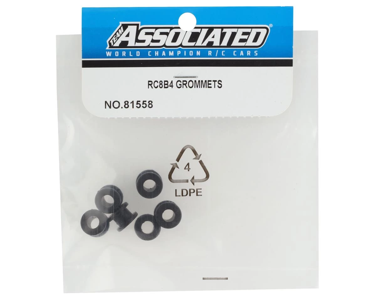 Team Associated RC8B4 Grommets. These replacement grommets are intended for the Team Associated RC8B4 or the RC8B4e. Package includes six grommets.