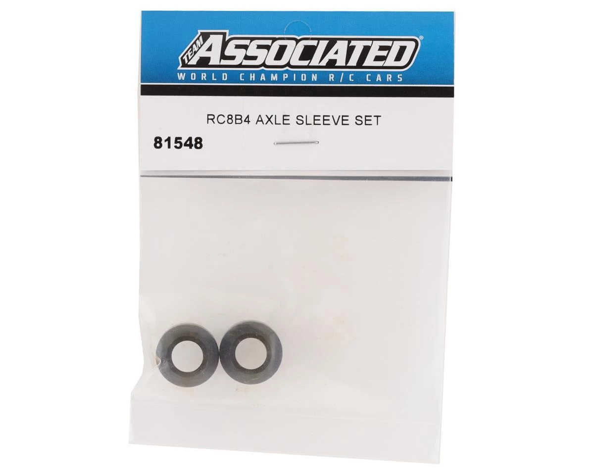 Team Associated RC8B4/RC8B4e CVA Axle Sleeve Set. These replacement axle sleeves are intended for the front or rear of the Team Associated RC8B4 or RC8B4e. Package includes two axle sleeves.
