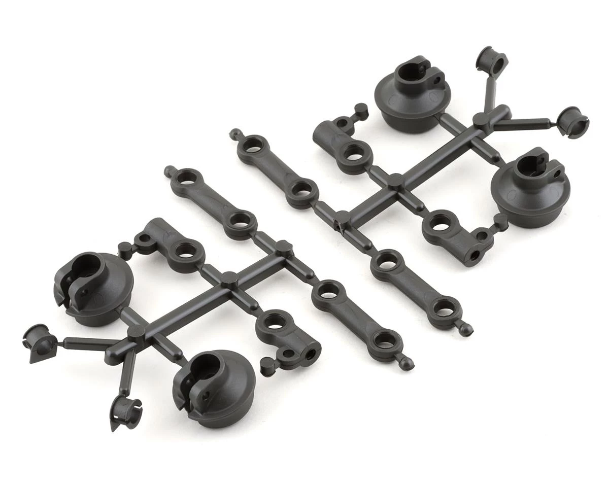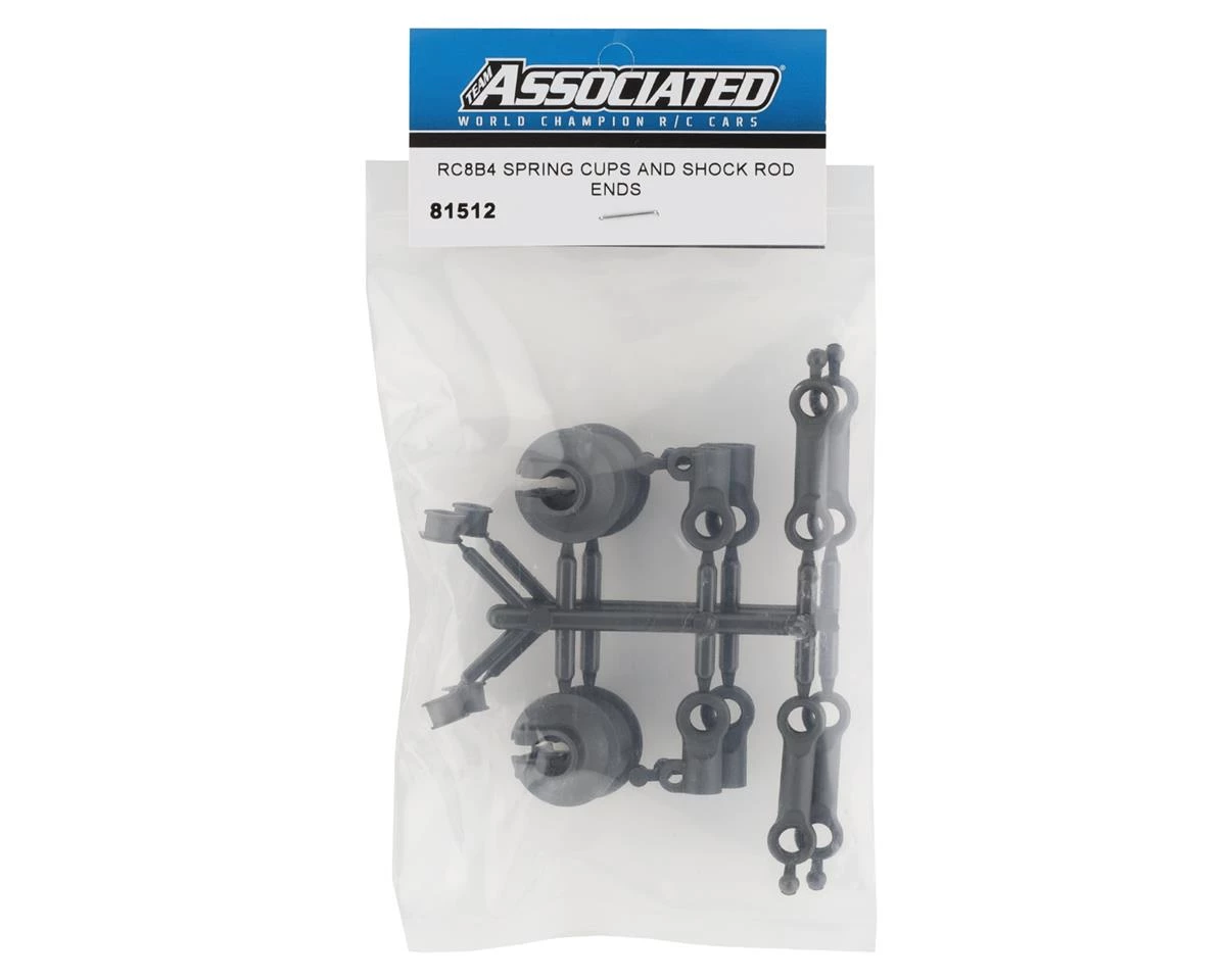 Team Associated RC8B4 Spring Cups & Shock Rod Ends. Package includes replacement shock spring cups and rod ends, as well as shock cap bushings and anti-roll bar links that can be used with the RC8B4 and RC8B4e models.