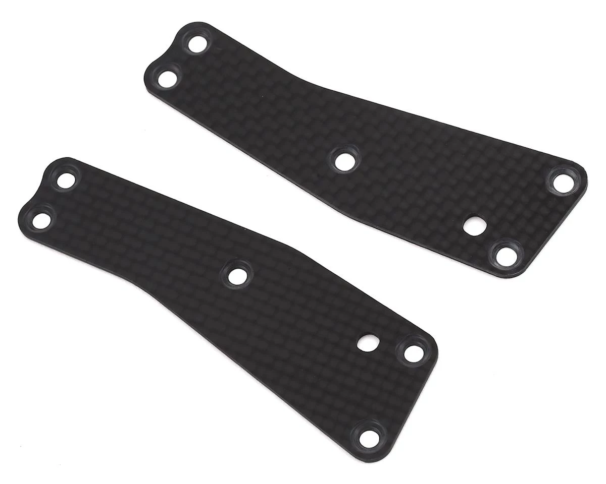 Team Associated RC8T3.2 Factory Team 1.2mm Carbon Fiber Front Upper Suspension Arm Inserts are a a precision machined upgrade for the RC8T3.2 and RC8T3.2e models. These are a direct replacement for the stock plastic inserts and offer improved stiffness, with a clean Factory Team look.