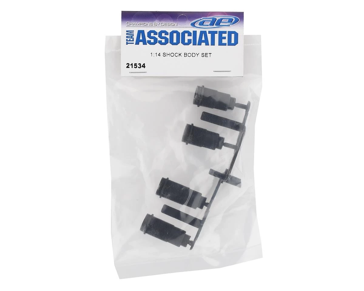 This is a replacement Team Associated Reflex 14B/14T Shock Body Set, including two front plastic shock bodies and two rear plastic bodies.