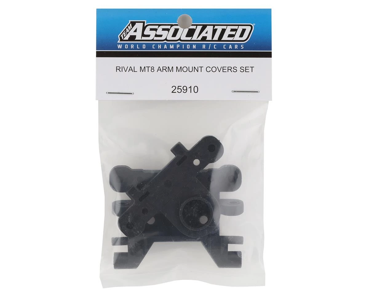 Team Associated RIVAL MT8 Arm Mount Cover Set. Package includes replacement front and rear arm mount covers.