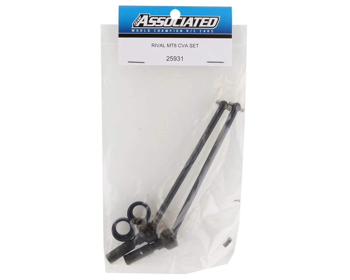 Team Associated RIVAL MT8 CVA Set. Package includes two replacement factory assembled CVA driveshafts that can be used in the front or rear.
