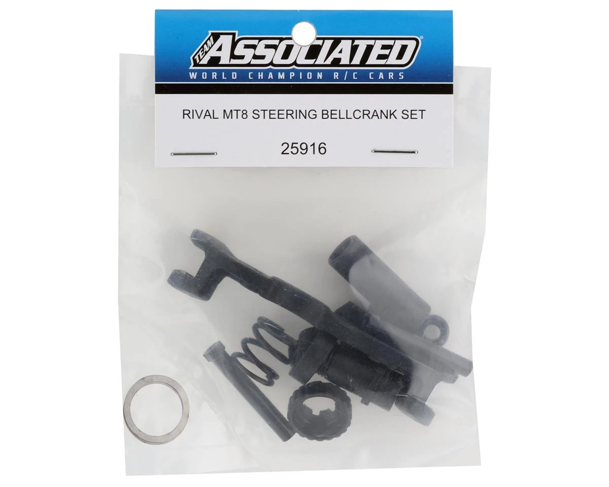 Team Associated RIVAL MT8 Steering Bellcrank Set. Package includes replacement plastic steering bellcrank components.