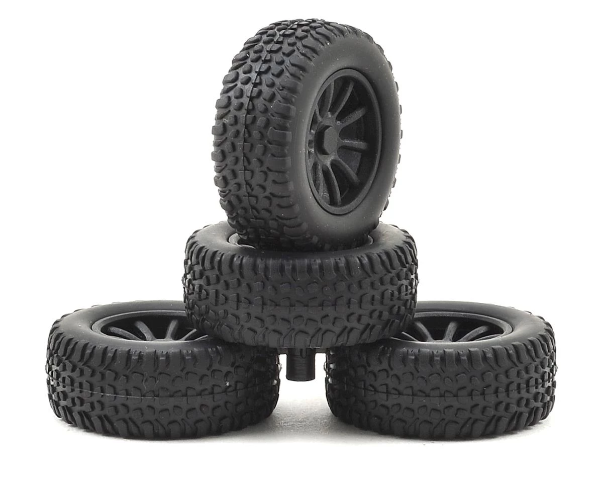A replacement set of four Team Associated Pre-Mounted Tires, suited for use with the SC28 Short Course Truck.Â