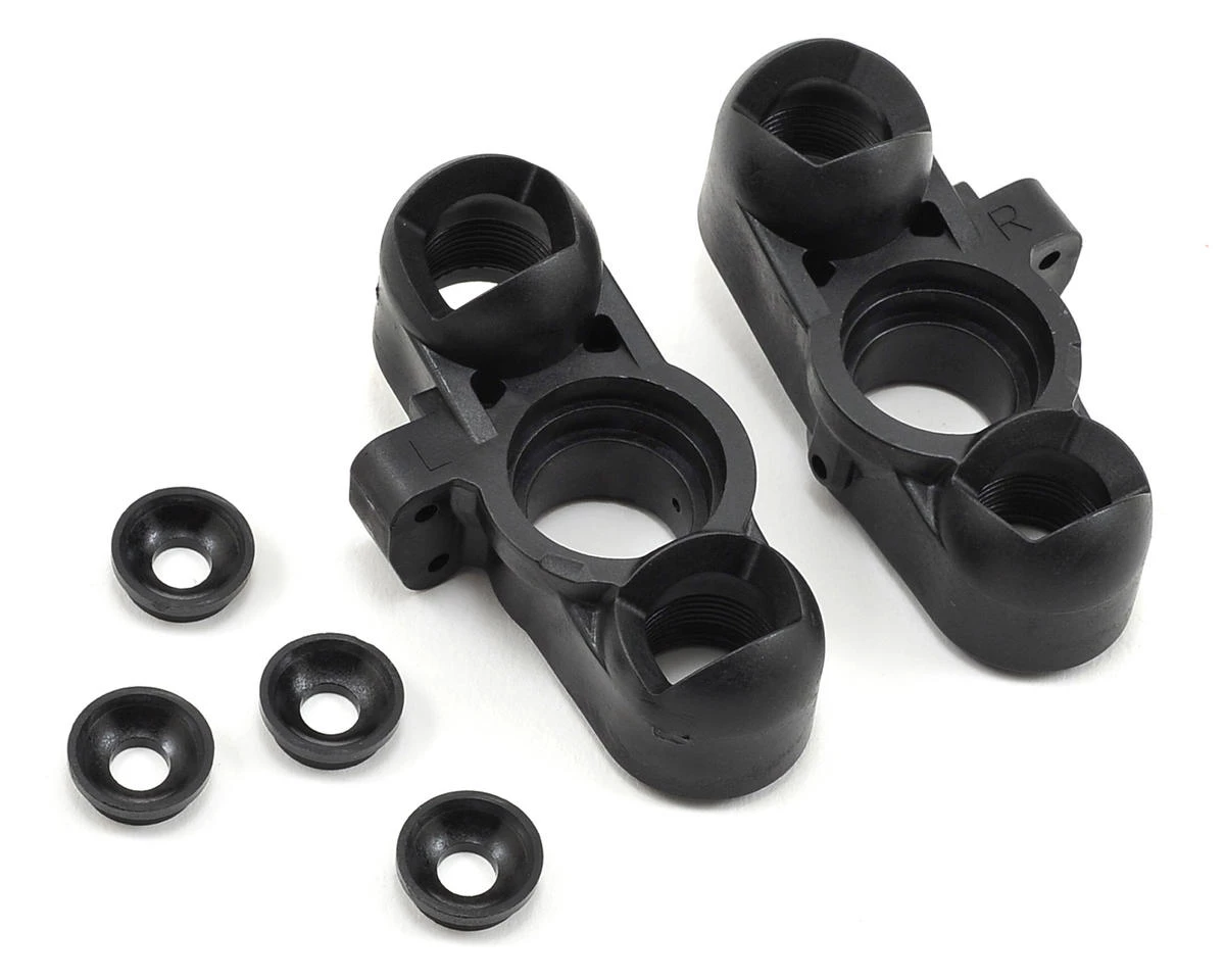 This is a replacement Team Associated Steering Block Set, intended for use with the RC8B3 Nitro Buggy. This set includes one left and one right side block, as well as four plastic inserts.