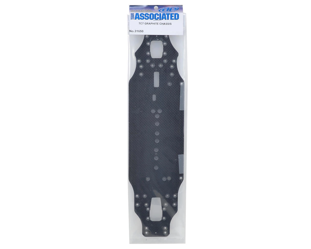 Team Associated TC7 Graphite Chassis. This is the stock replacement 2.5mm chassis. Approximate wieght is 83 grams.
